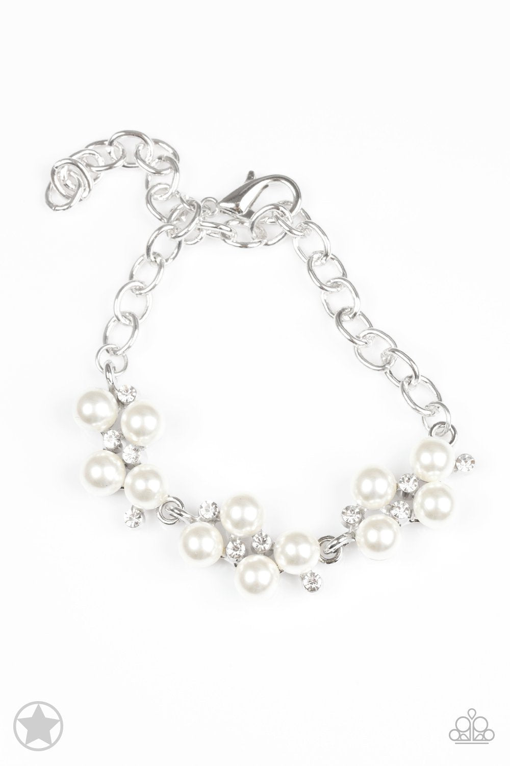 Small clusters of shimmery white pearls are dusted with sparkling rhinestones, creating a romantic timeless design. Features an adjustable clasp closure. Sold as one individual bracelet.
