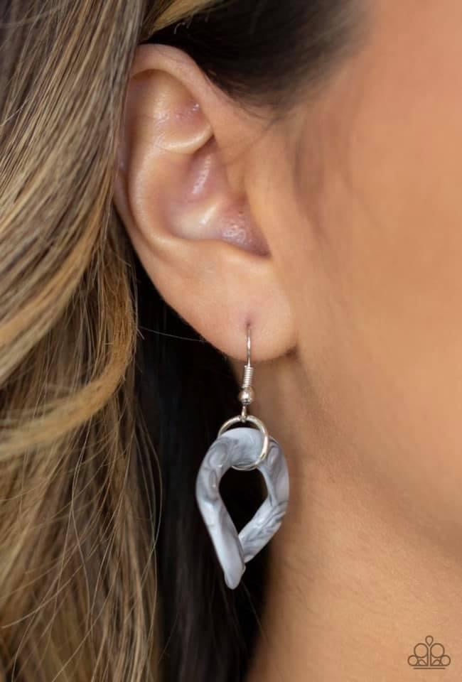Featuring a faux marble finish, white acrylic links gradually increase in size as they link below the collar in a statement-making fashion.